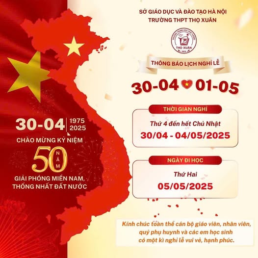 THÔNG BÁO NGHỈ LỄ 30/4 & 1/5