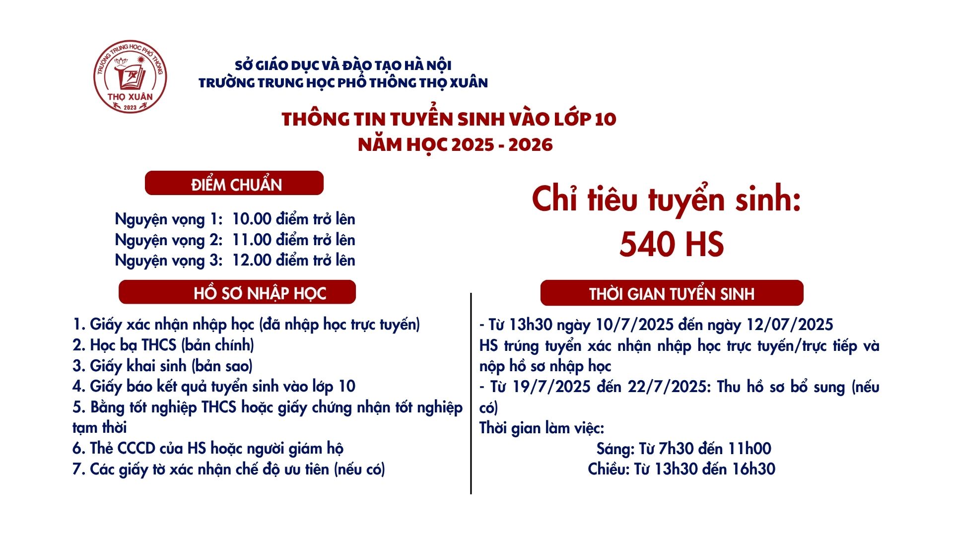 THÔNG BÁO TUYỂN SINH LỚP 10 2025 – 2026