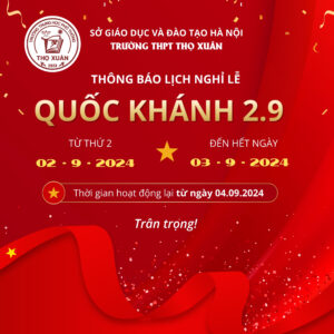 Trường THPT Thọ Xuân xin trân trọng thông báo lịch nghỉ lễ Quốc Khánh 2/9...