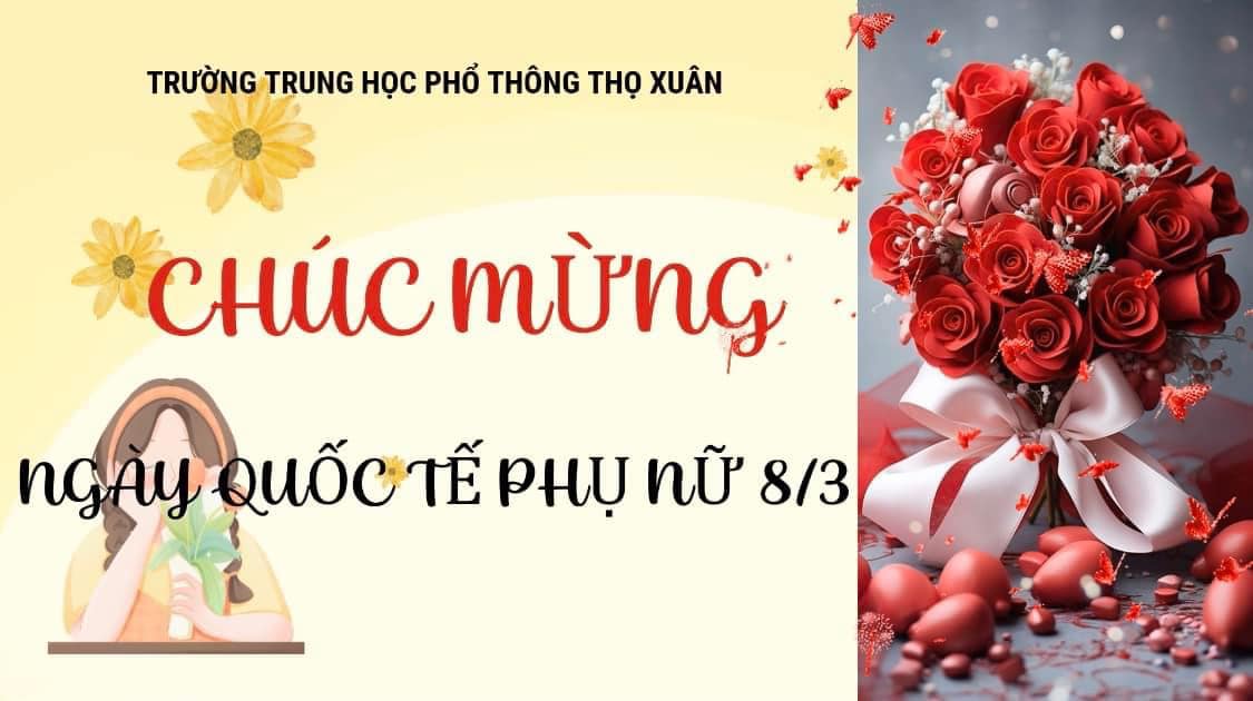 Để hưởng ứng và tri ân những người phụ nữ trong ngày mồng 8-3, Thầy Phạm Huy Thiệp – Bí Thư chi bộ, Hiệu trưởng nhà trường đã thay mặt nhà trường gửi lời chúc cùng với lẵng hoa tươi thắm đến các cán bộ, công nhân viên, những người thân là phái nữ và các em nữ sinh của trường THPT Thọ Xuân những lời chúc tốt đẹp nhất.